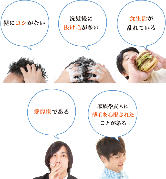 ヘアスタイルでは、男性型脱毛症などの抜毛や薄毛にお悩みになる前に