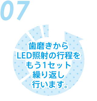 • 2回目のLED照射が完了したら歯磨きをして、工程は終了となります。